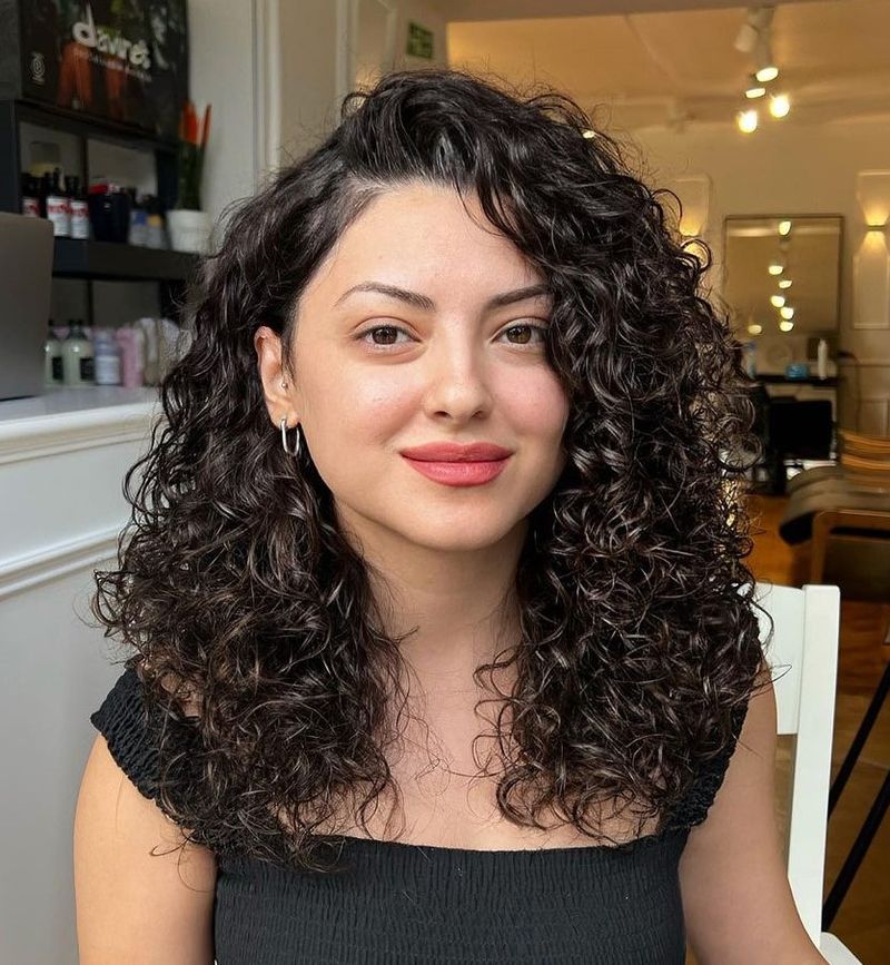 Curly bangs add a playful and youthful touch to any hairstyle, framing the face with defined curls. This look involves cutting the front section of hair to form bangs, while leaving the rest of the curls loose.
