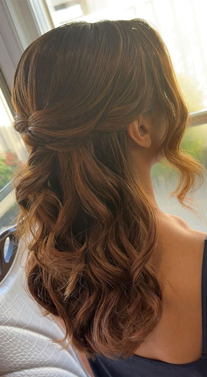 Capture the essence of romance with a half-up twist that combines elegance with a touch of whimsy. Imagine a fairytale princess attending the ball, her hair softly twisted and pinned to create a delicate balance between formal and playful.